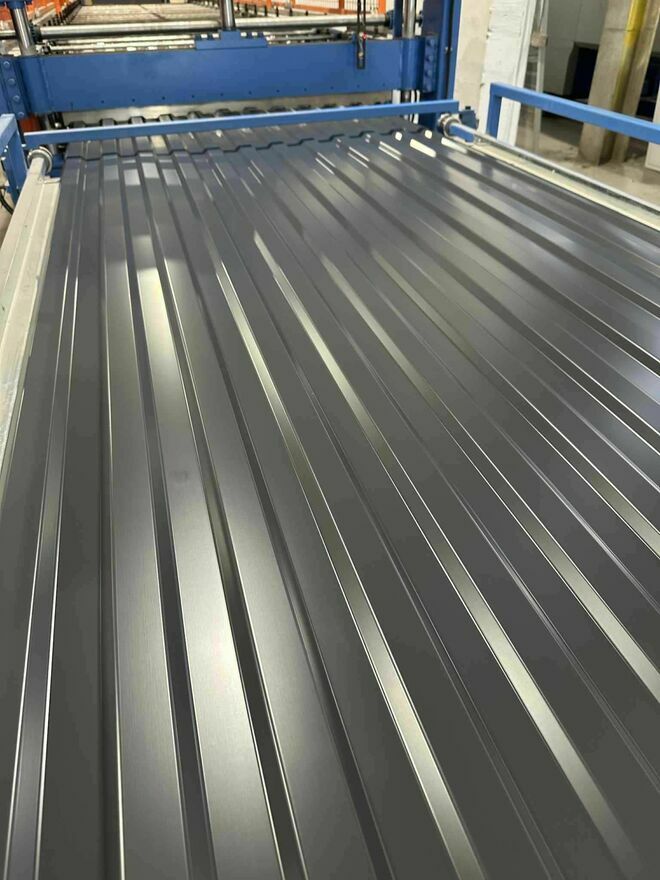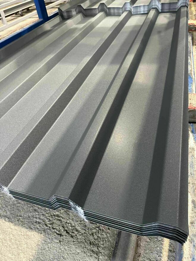 Fabryka pokryć dachowych oferuje blachę trapezową profil T-18 grafit 0,4 grubość!Kolor grafit -antracyt RAL 7016 połysk i brąz 8017